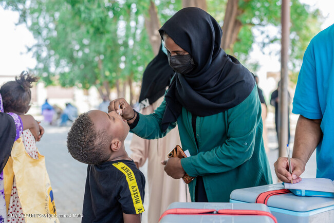 ユニセフなどが白ナイル州で実施している、コレラの予防接種キャンペーンの様子(スーダン、2025年2月25日撮影) (C) UNICEF/UNI754619/Mohamed Mahdi