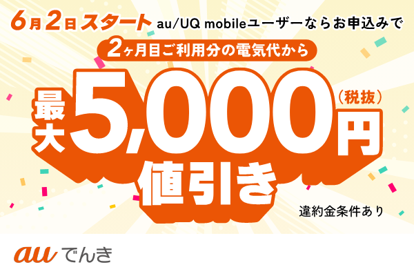 最大5,000円値引き!auでんき家計応援施策開始のお知らせ