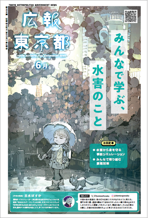 東京都では、都政や都民生活に必要な情報を伝えるため、広報紙「広報東京都」を毎月1日に発行しています。6月号は、「みんなで学ぶ、水害のこと」と題し、これから始まる本格的な梅雨や大雨に備えて、「水害リスク」への正しい知識と万が一の備えについて紹介します。注目記事は「水害から身を守る事前シミュレーション」「みんなで取り組む豪雨対策」の2つ。クイズなどもまじえながら、水害について正しい知識を深めることができる内容となっています。
