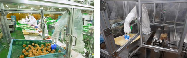 (左)おかず盛付ロボット、(右)フライ投入ロボット