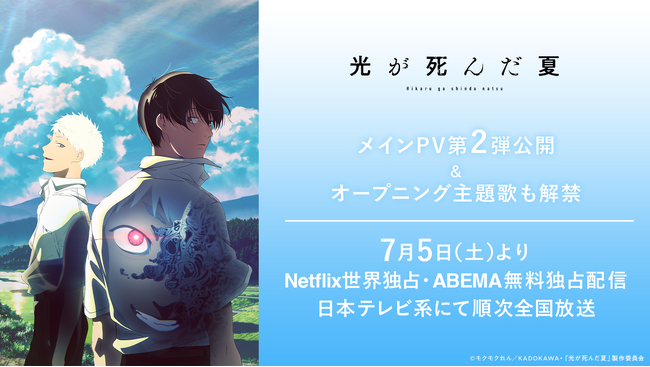 TVアニメ『光が死んだ夏』は、2025年7月5日(土)よりNetflix世界独占・ABEMA無料独占配信、日本テレビ系にて順次全国放送いたします。放送に先駆けたイベントも続々発表してまいります。ますます目が離せない本作の続報を、ぜひ楽しみにお待ちください。
