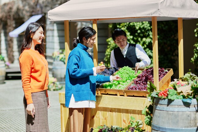 自然豊かな八ヶ岳エリアのリゾートホテル「リゾナーレ八ヶ岳」では、2025年9月2日~26日の間、葡萄の生産量日本一を誇る山梨県で秋の味覚「葡萄」を楽しみ尽くせるイベント「回廊の葡萄フェスタ2025」を開催します。会場となる「ピーマン通り」には、昨年大好評だった1粒から自分好みに組み合わせて葡萄を購入できる「葡萄ワゴン」が今年も登場します。また、新たにシャインマスカットとサンシャインレッドをふんだんに使った「葡萄のこぼれタルト」も登場。3種類の「葡萄モンブラン」や、期間中30種類の「葡萄の生絞りジュース」も提供するので、品種ごとの味わいの違いを存分に楽しめます。さらに、生産者から話を聞きながら好みの葡萄を見つけられる対面販売も行います。秋の味覚である「葡萄」の個性豊かな味わいを楽しみ尽くせるイベントです。