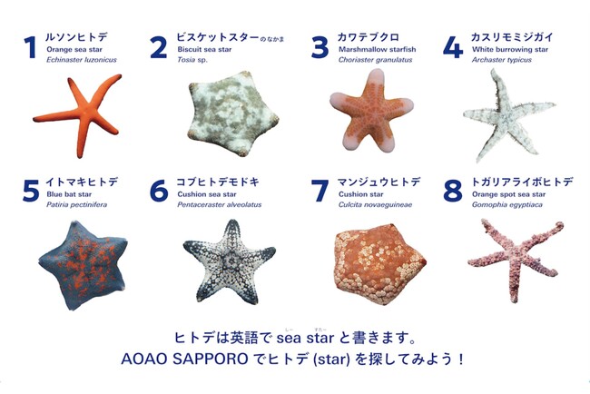 AOAO SAPPOROでは、2025年6月6日(金)から7月7日(月)七夕の日まで、10種類*1の「ヒトデ」を展示し、色やかたち、模様、質感など、多様な“海の星”の姿を紹介する「ヒトデのワンダー展」を開催します。