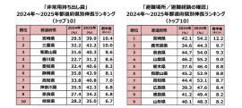 都道府県別ランキング トップ10(左)、2024年→2025年伸長ランキング都道府県別トップ10(右)