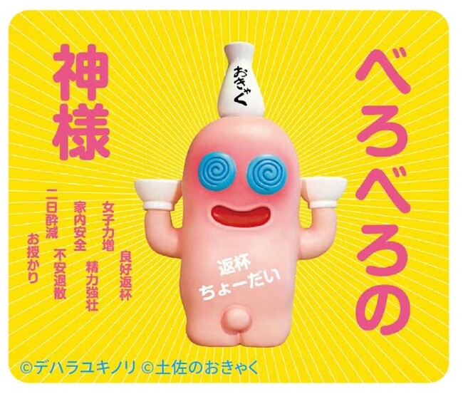 デハラユキノリさん作。高知の宴会の神様“べろべろの神様”をモチーフにしたオリジナルグッズが登場。お猪口や手ぬぐい、クリアホルダー、ソフビなど、会場以外ではなかなか買えないレアなものばかり。