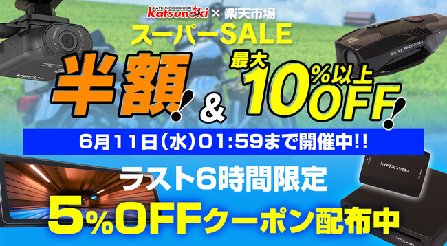 【楽天スーパーSALE】MAXWINの最新デジタルミラーやバイク用ドライブレコーダーが半額以上の超特価!ラスト6時間100名限定全アイテム対象クーポンも発行中!