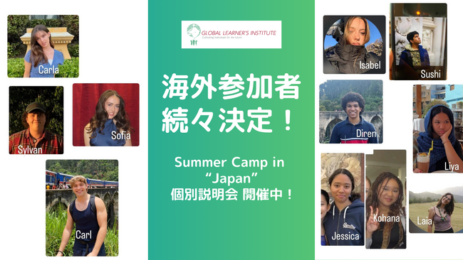 国内外のボーディングスクール進学支援を行うコンサルティング型英会話スクール「Global Learner’s Institute(以下、GLI)」は、2025年7月20日(日)から26日(土)にかけて、多国籍の参加者とともに日本を舞台とした国際教育プログラム「Summer Camp in Japan」を開催いたします。