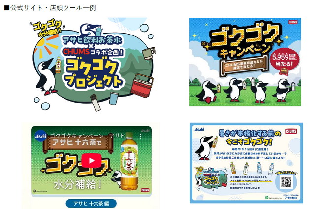 アサヒ飲料株式会社(本社 東京、社長 米女太一)は、「十六茶」「おいしい水」「颯」「和の紅茶」「スーパーH2O」ブランドとアウトドア・カジュアルブランド「CHUMS」がコラボレーションした「ゴクゴクプロジェクト」を6月16日から開始します。