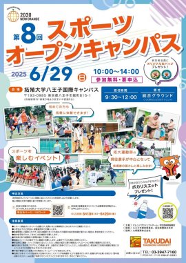 拓殖大学(東京都文京区・八王子市)は、6月29日(日)に八王子国際キャンパスにて第8回スポーツオープンキャンパスを開催する。