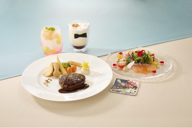 パークのメインダイニング『パークサイド・グリル』に、アーニャが大好物のピーナッツ(パイ)が 添えられた、ロイドのハンバーグを味わえる『SPY×FAMILY パークサイド・グリル・スペシャルセット ~ロイドのハンバーグ~』が登場。薔薇の花が散る美しい前菜とともに、フォージャー家自慢の絶品を“おでけけ”気分でお楽しみいただけます。