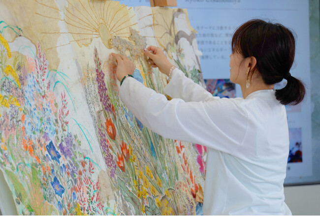 和紙を使って作品を描くGXアーティスト宇都宮涼子氏