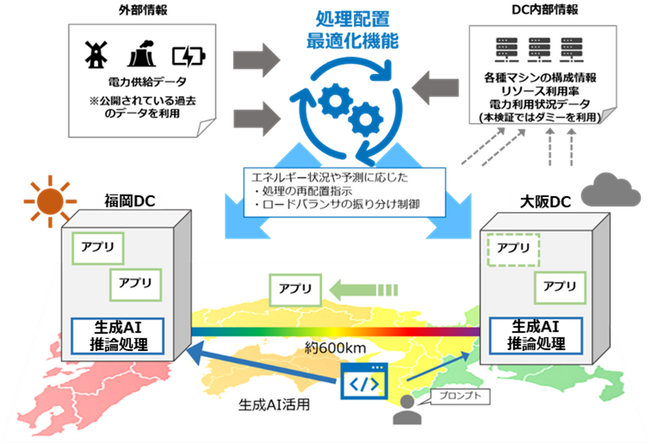 西日本電信電話株式会社(本社:大阪市都島区、代表取締役社長:北村 亮太、以下「NTT西日本」)、日本電信電話株式会社(本社:東京都千代田区、代表取締役社長:島田 明、以下「NTT」)、株式会社QTnet(本社:福岡県福岡市、代表取締役社長:小倉 良夫、以下「QTnet」)は、地理的に離れたデータセンター(以下「DC」)に分散配置された計算処理環境においても、IOWN オールフォトニクス・ネットワーク(All-Photonics Network、以下「APN※1」)による通信の特徴である大容量・低遅延をいかして、処理配置最適化(計算負荷や電力消費に応じた最適な処理配置を動的に行うこと)が可能であることを、共同で実証しました。