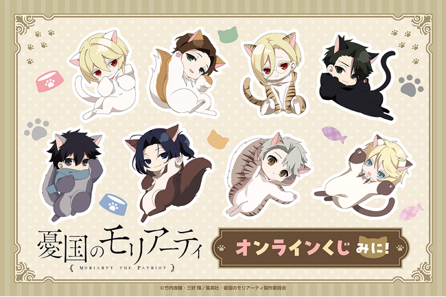 TVアニメ『憂国のモリアーティ』より、ねこの着ぐるみ姿の新規ミニキャライラストを使用したオンラインくじが登場!