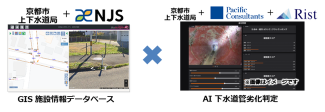 今般、京都市上下水道局とPCKKとRistが共同研究しているAIモデルとAPI連携したGISを当社が構築し、「AIを活用した下水道管路劣化判定の効率化に関する共同研究」をすることとなりました。