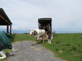 毎年この時期から10月の上旬頃まで、麓から15頭程の牛が高ボッチ牧場にやってきます。