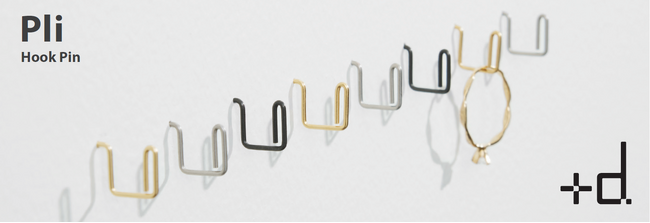 アッシュコンセプト(東京都台東区 / 代表取締役 名児耶秀美)は、オリジナルブランド「+d (プラスディー)」の人気製品、強度のある素材をコの字に曲げる発想と技術で実現した、シンプルを極めたフック型ピン『Pli (プリ)』より、新色のゴールドとブラックを6月18日(水) に発売いたします。