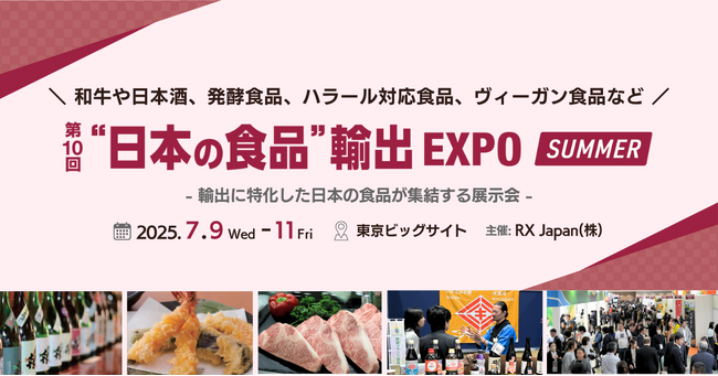 RX Japan株式会社は、2025年7月9日(水)~11日(金)の3日間、東京ビッグサイトにて、日本最大級の食品輸出専門展「第10回 "日本の食品" 輸出EXPO」を開催いたします。本展は、海外展開を目指す日本の食品企業と、世界中のバイヤーが一堂に集まる国際的な商談展示会です。今回は多数の国内の輸出商に加え、60カ国以上のバイヤー3,000名が来場予定であり、メディアの皆様にとっても日本の食品業界が描く“海外進出の今”を取材できる絶好の機会となっています。