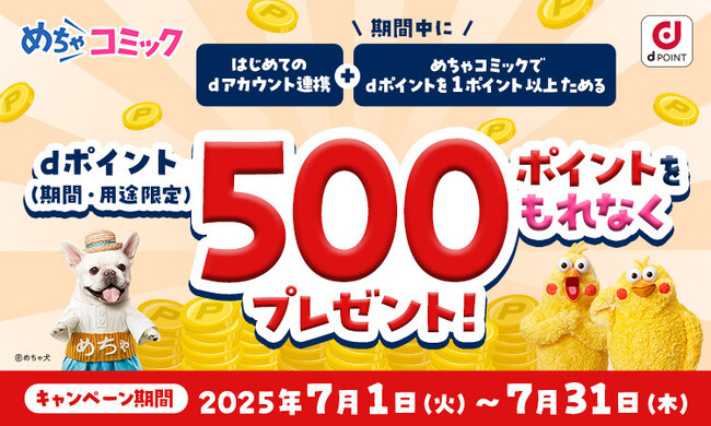 電子コミック業界としては初となる取り組みで、これによりdアカウントをお持ちの全てのお客様が、めちゃコミックIDを連携することで、めちゃコミック内でのお買い物でdポイントをためることができ、たまったdポイントをめちゃコミック内のポイント購入にご利用いただけるようになります。