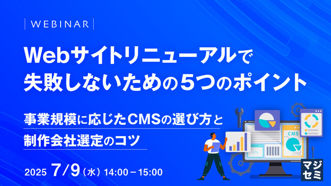 マジセミ株式会社は「Webサイトリニューアルで失敗しないための5つのポイント」というテーマのウェビナーを開催します。