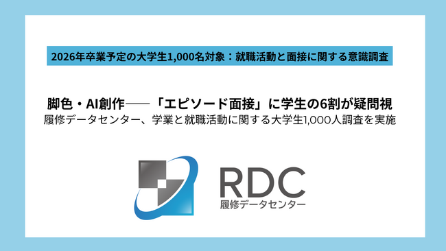 株式会社履修データセンター(本社:東京都港区、代表取締役:辻太一朗)は、2026年卒業予定の全国の大学生1,000名を対象に、「就職活動と面接に関する意識調査」を実施しました。その結果、学生の6割以上が「ガクチカ(学生時代に力を入れたこと)などのエピソード面接に違和感を持っている」ことが明らかになりました。