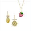 イチゴ、パイナップル、サクランボ、メロンは、ふっくらとした立体感のあるシルエットに仕上げ、ブドウは、色味の違う2種類のカラーストーンをセッティングすることで本物の実のような表情の違いを表現しました。別売りのネックレスチェーンに通すほか、お手持ちのチェーンやほかのジュエリーと組み合わせて使うなど、お好みのアレンジをお楽しみください。それぞれのモチーフにはポジティブな意味が込められており、お守りジュエリーとしてもおすすめです。