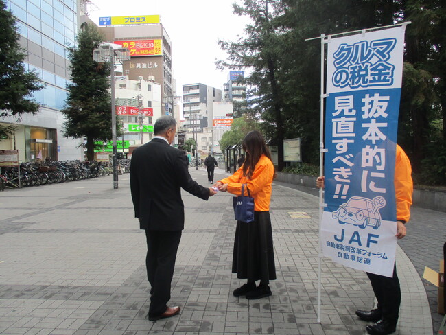 現在、日本の自動車に関連する税金は、取得(購入)、保有、使用(走行)の段階でさまざまな税が課せられており、その負担は欧米諸国に比べ極めて過重なものとなっています。当日は、「過重な税負担の軽減」や「複雑な自動車税制の簡素化」などの改正要望を訴えるチラシを配布し、自動車の税負担軽減と簡素化の必要性について広く社会に訴えます。