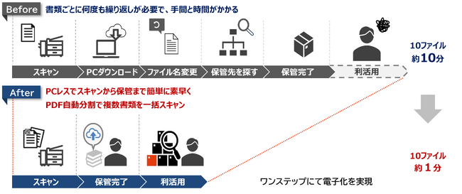 近年、多くの企業がDXを推進する中で、紙文書のデジタル化は業務効率化と情報資産の有効活用に欠かせないステップとなっています。一方で、スキャン後のファイル整理や情報入力、クラウドへのアップロードといった作業が大きな負担となっています。また、電子化された書類がファイルサーバーに保存されているだけでは、必要な情報をすぐに見つけ出すことが難しく、情報の利活用が進まないという課題もあります。