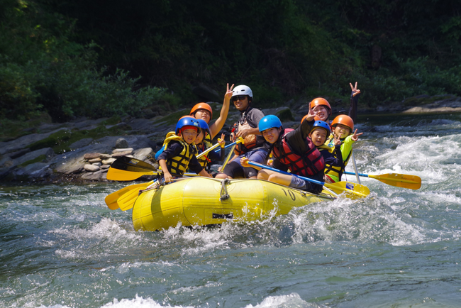 プラスワン教育のツアーで唯一、ラフティングが体験できるツアーです。プロのインストラクターの指導のもと、スタート前に漕ぐ練習を行います。初めて挑戦されるお子様も安心してご参加いただけます。