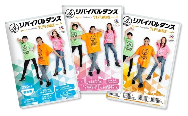 昭和・平成のヒット曲に合わせて楽しく踊ることで、手軽に運動不足が解消でき、認知機能の改善効果もイメージ。ダンスDVD2枚とCD1枚のセットです。