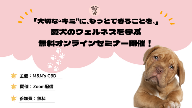 「キミを想う・キミに寄り添う」をブランドメッセージに掲げるM&N’s CBD(運営:株式会社ウェルファーマ:渋谷区)は、愛犬・愛猫の健康と幸せを願うすべての飼い主さまを応援する無料オンラインセミナーを開催いたします。