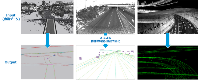 AIによる高精度3次元地図データ生成イメージ