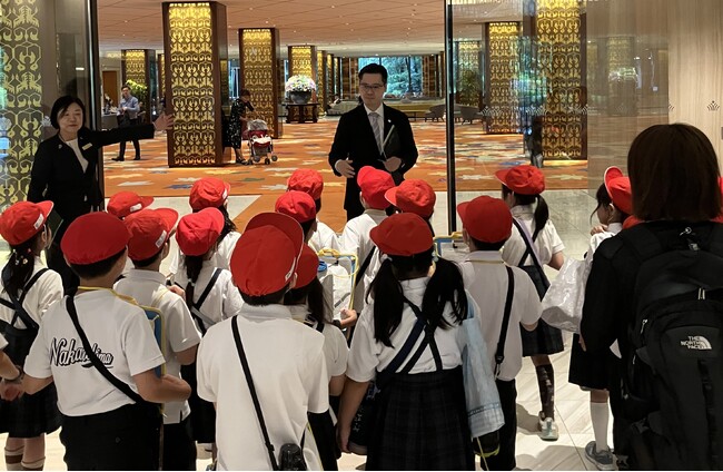 リーガロイヤルホテル大阪 ヴィニェット コレクション(大阪市北区中之島、総支配人 中川 智子)は、社会貢献活動の一環として、大阪市立中之島小中一貫校の校外学習の取り組みに協力し、児童によるホテル館内見学を2025年6月10日と12日に実施いたしました。ホテルスタッフがホテル内の施設や仕事について説明しながら館内を案内し、児童に当ホテルへの理解を深めていただきました。