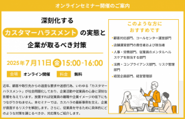 『深刻化するカスタマーハラスメントの実態と企業が取るべき対策』 セミナー開催のお知らせ