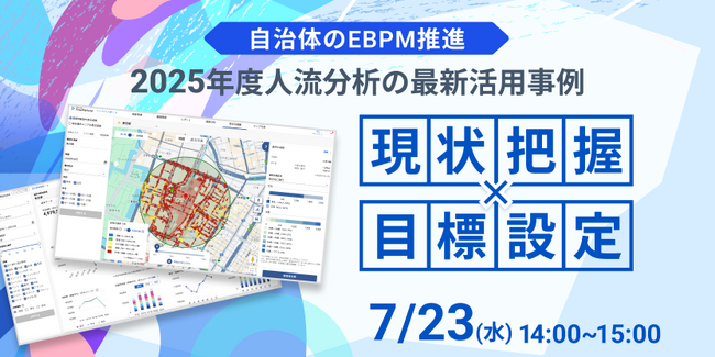 7/23(水)人流分析ウェビナー開催【自治体のEBPM推進】2025年度人流分析の最新活用事例(現状把握×目標設定)