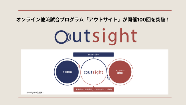 株式会社ローンディール(本社:東京都港区、代表取締役:原田未来)が提供する、ベンチャー企業の事業課題を大企業人材が本気で議論するオンライン他流試合プログラム「outsight(アウトサイト)」は、2025年5月をもって100回目の開催を迎えました。2021年のサービス開始から、これまでに534名・65社以上の企業人材が参加しています。