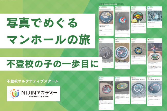 本企画では、全国各地の“マンホール”をテーマに、子どもたちが外に出て写真を撮影し、それをNIJINアカデミーの内部コミュニティ内で共有。集まった写真は最終的に「みんなでつくる全国マンホールマップ」としてまとめられます。