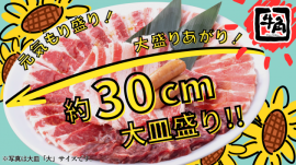 テーブルを華やかに盛り上げる「大皿」は、ご家族で気軽に楽しめる「バラエティー4種盛り」と、牛角の看板メニューを堪能できる「厳選牛角盛り」の2種類をご用意。 「大」サイズはお皿の直径が約30cmのビッグサイズ!サイズはそれぞれ「並 2~3人前」と「大 3~4人前」があるため、シーンに応じてご利用いただけます。この機会にぜひ、牛角で人気の「大皿メニュー」をお得にお楽しみください。