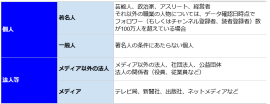 割合については下図のとおり、前年平均と比較すると、「著名人」が8.3ポイントの増加、「一般人」が3.8ポイントの減少、「メディア以外の法人」が2.7ポイントの減少、「メディア」が1.8ポイントの減少という結果でした。