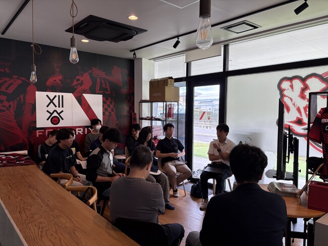 FC刈谷の事務所にて講義が行われ、企業や個人のブランドマネジメント、さらにはスポーツ業界とは異なる分野での仕事内容に焦点を当てました。