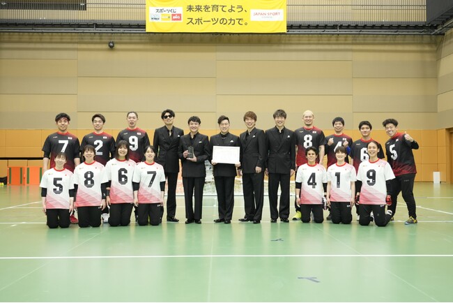 そしてこのたび、2025年6月30日付で、ゴスペラーズがゴールボール日本代表「オリオンJAPAN」の応援アンバサダーに就任いたしましたことを、ここにお知らせ申し上げます。味の素ナショナルトレーニングセンターで執り行われた記念式典では、強化指定選手が見守る中、協会会長梶本美智子より任命状と記念盾が送られました。