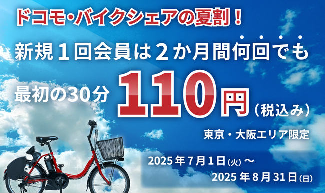 2025年7月 1日(火)より、あなたの“はじめて”を応援するドコモ・バイクシェアの夏割を実施します。