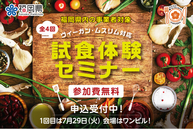 福岡県「ヴィーガン・ムスリム対応 試食体験セミナー」を開催!7/29(火)は福山剛シェフがスペシャルメニューを提供! ※参加費無料
