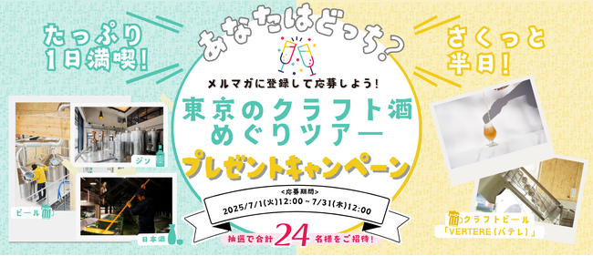 <キャンペーン名称>メルマガに登録して応募しよう!『東京クラフト酒めぐりツアー あなたはどっち?「たっぷり1日満喫」or「さくっと半日」 』プレゼントキャンペーン