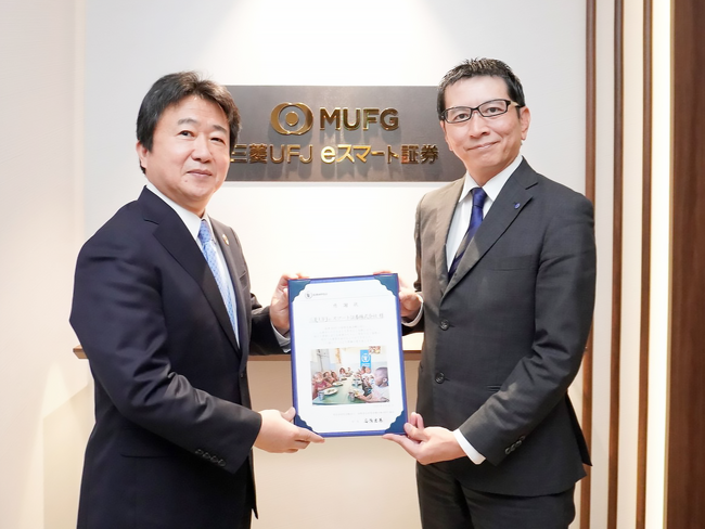 三菱UFJ eスマート証券株式会社(代表取締役社長 飛松 一樹、以下「三菱UFJ eスマート証券」)は、2024年度に日本証券業協会(以下「日証協」)の「株主優待SDGs基金」(※1)を通じて国連世界食糧計画(WFP)(※2)、公益社団法人 国土緑化推進機構(※3)に対する寄付を実施し、この2団体から2025年6月に感謝状を受領しました。同基金を通じた寄付は2023年度の初回に続き2回目です。