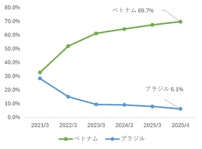 図1 ビレッジハウス外国人新規契約者の国籍別割合の推移