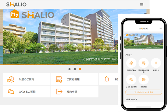 今般、入居者専用アプリ『My SMALIO』を本格導入することで、入居者は窓口の営業時間を気にすることなくいつでもスマートフォン等で申請手続きやお問合せが可能となります。