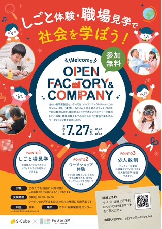 S-Cube職場見学・仕事体験こども向け夏休みイベント「オープンファクトリー」を行います