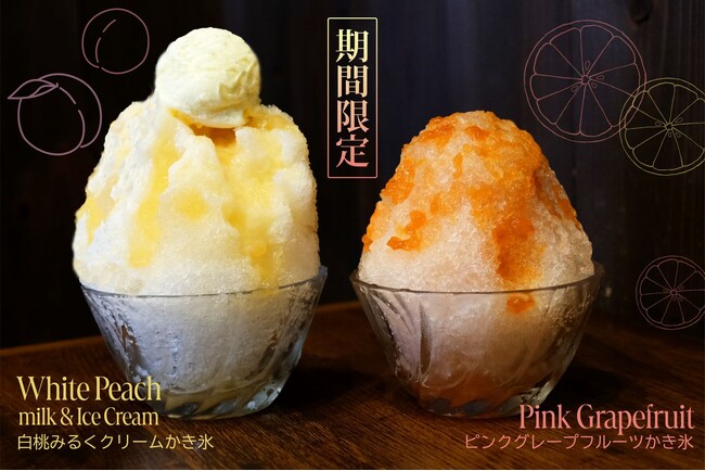 今年の盛夏は、みずみずしいフルーツかき氷でひんやり涼しく!鎌倉甘味処くるみより「ピンクグレープフルーツかき氷」、「白桃みるくクリームかき氷」が登場