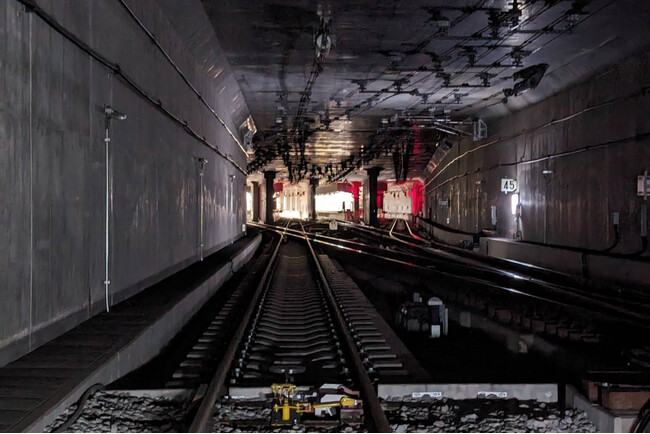 再開発により日々発展を続けるうめきたエリアでは、増加する交通量を支えるため、2031年に開通予定のなにわ筋線(仮称)の建設が行われています。現在工事中のうめきたエリアの地下トンネルへご案内します。建設中の駅ホームや、並走する既存路線を走行する列車は、通常は工事関係者しか見ることができない、まさに非日常の光景です。