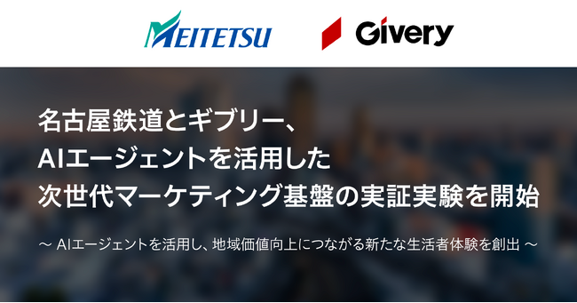 名古屋鉄道株式会社(本社:愛知県名古屋市、代表取締役社長:高崎裕樹、以下、名鉄)と株式会社ギブリー(本社:東京都渋谷区、代表取締役社長:井手高志、以下、ギブリー)は、生成AI・AIエージェント技術を活用したマーケティング基盤の実証実験プロジェクトを開始しました。